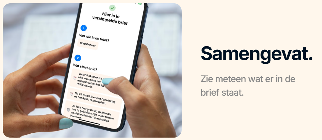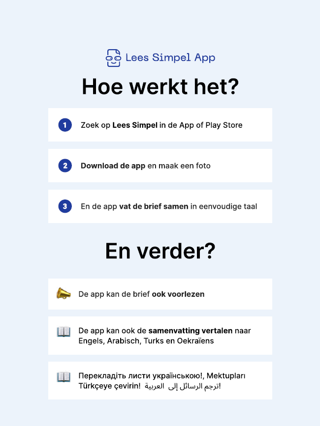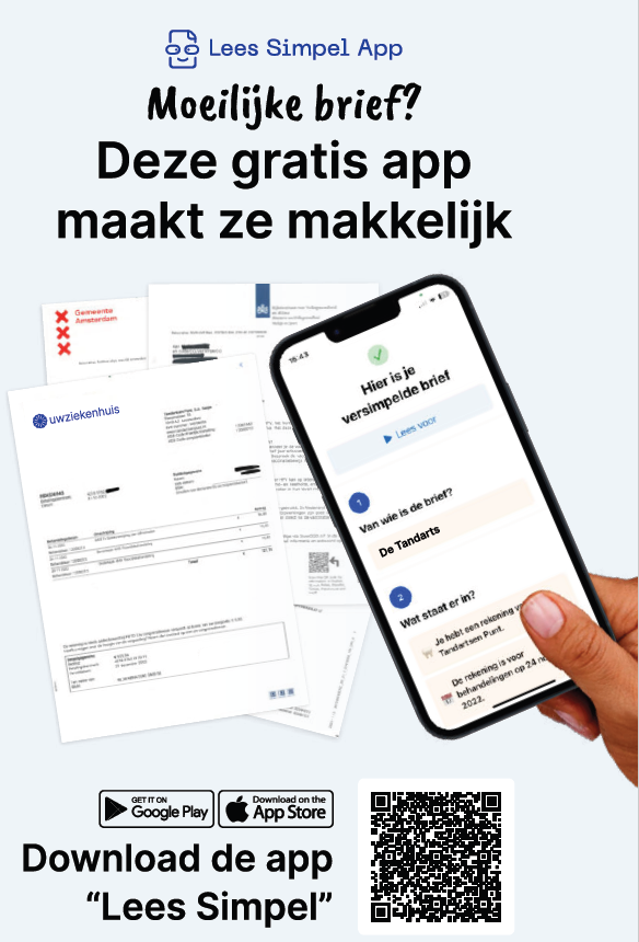 Via de app Lees Simpel kunt u een brief makkelijker maken om te lezen. Deze app is erg handig voor de ouders van anderstalige nieuwkomers die Nederlands niet als tweede taal hebben, of Nederlands aan het leren zijn.