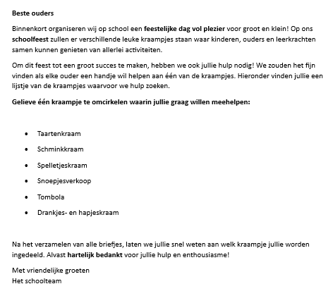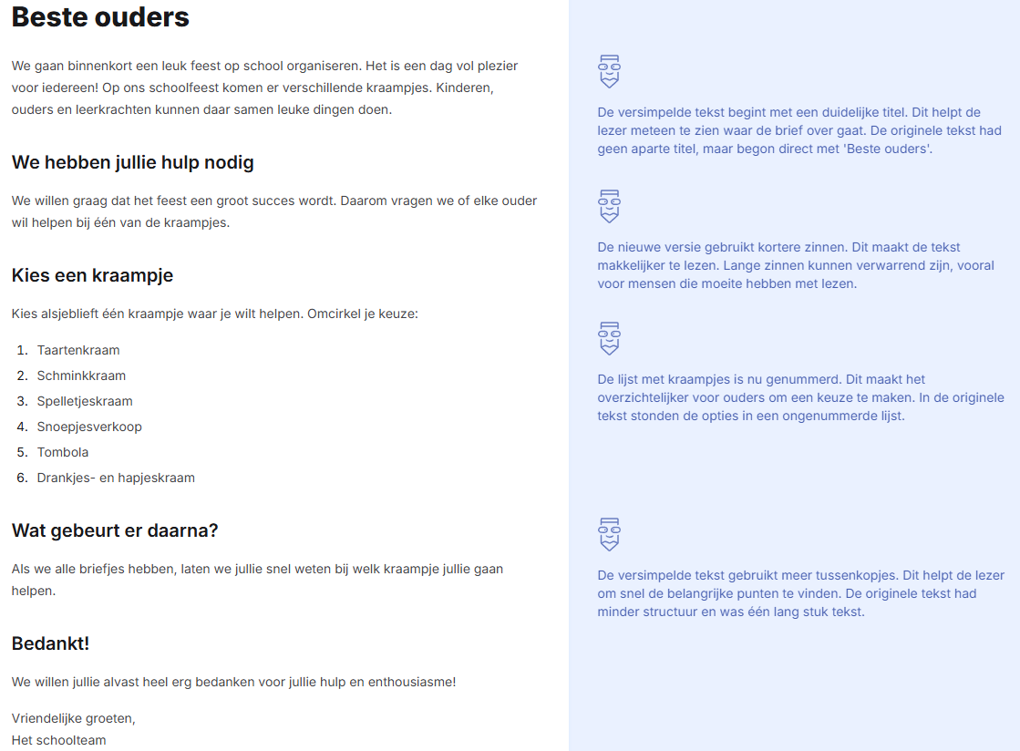 Soms kan het moeilijk zijn om een brief in eenvoudige taal te schrijven, als u zelf een moedertaalspreker bent. Eenvoudige taal is nodig voor anderstalige nieuwkomers of andere anderstalige ouders.